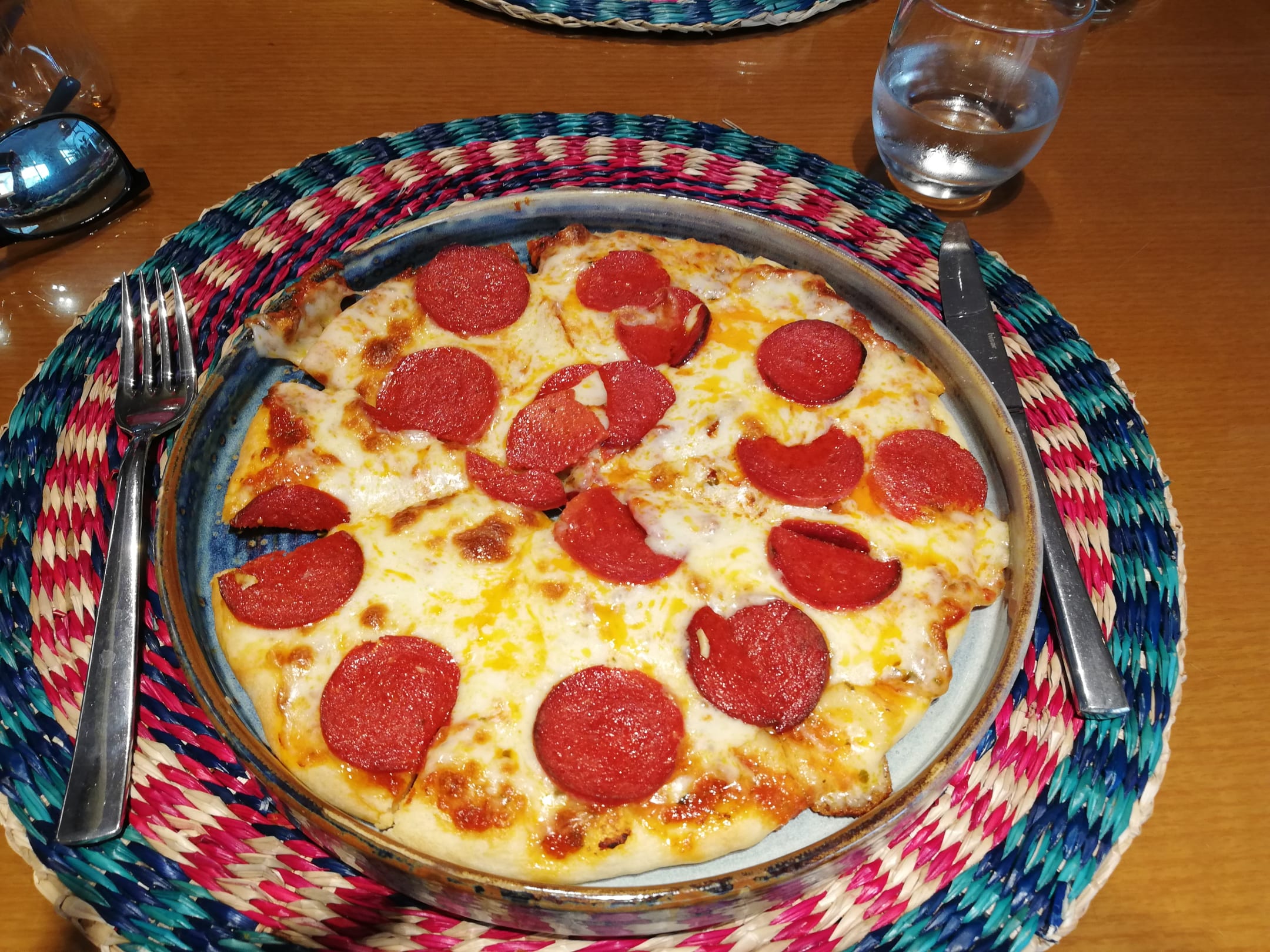 Frische Pizza mit Salami im "Tropic"