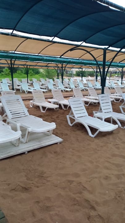 Liegen am Strand. Die Auflagen bekommt man Vorort ab 8 Uhr.