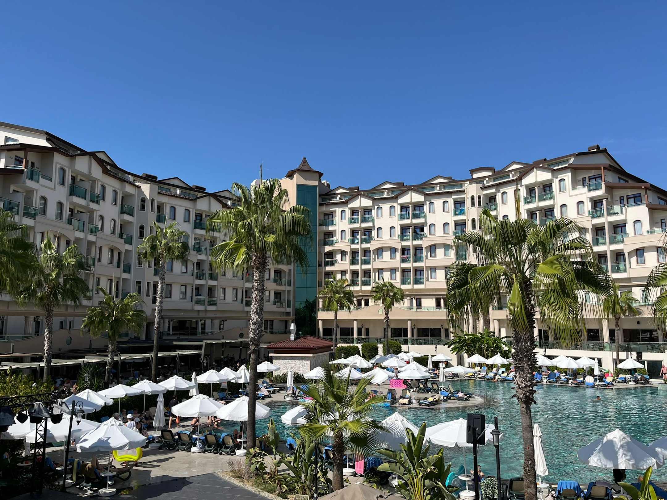 Blick von der Kaffee-Bar aufs Hotel
