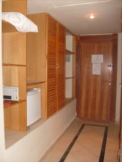 Выход из номера, слева - шкаф, сейф, холодильник