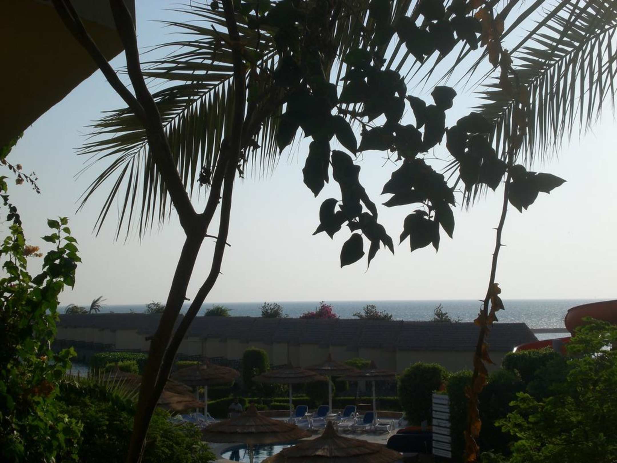 Ausblick auf Strand und Bungalows