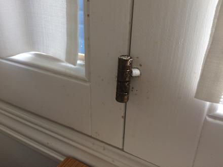 Dreckige Fensterrahmen im Essensbereich