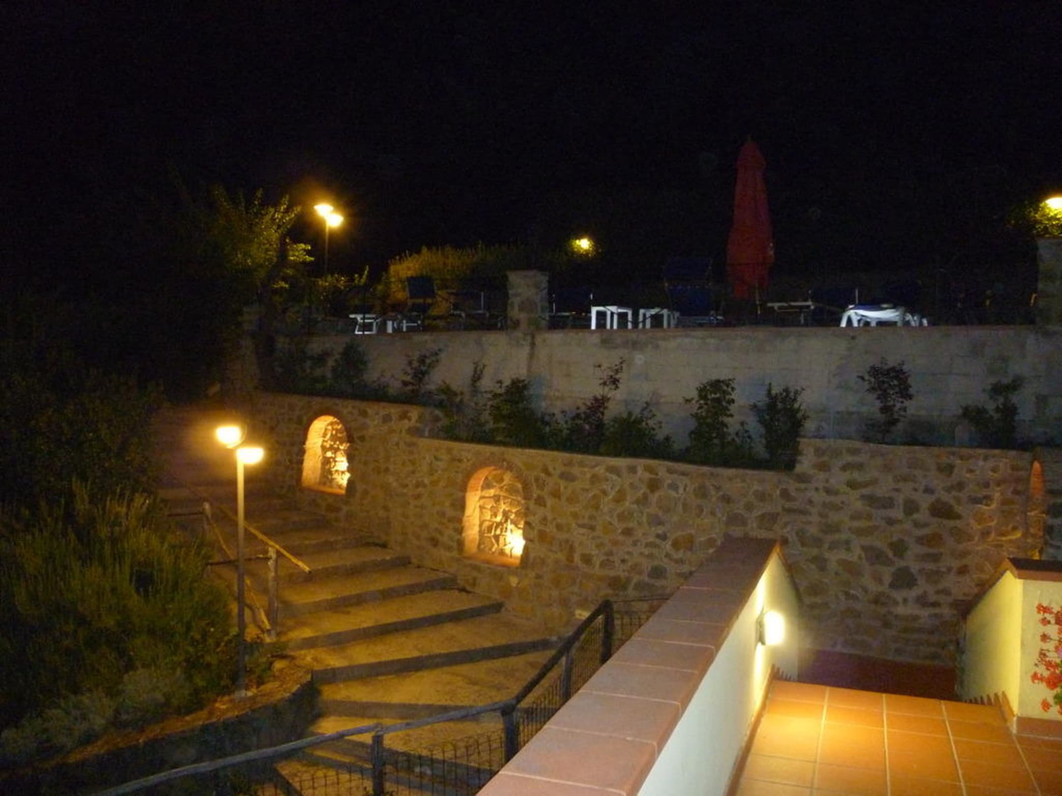 Die Treppe zum Pool bei Nacht