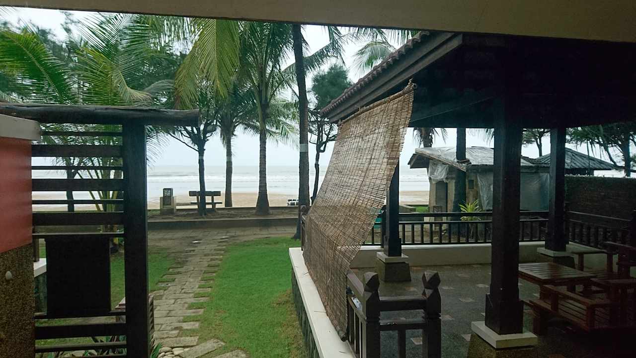 Blick vom Deluxe Seaview Bungalow auf Terrasse und Strand