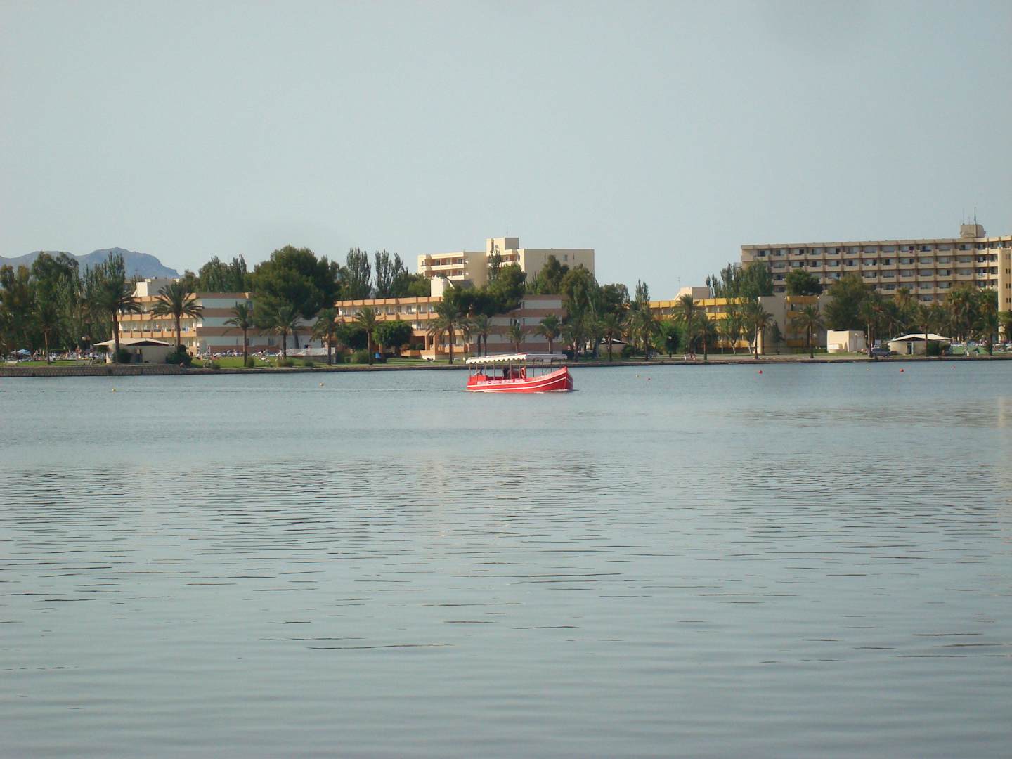 Blick über den See auf die Hotelanlage von der Strandseite aus.