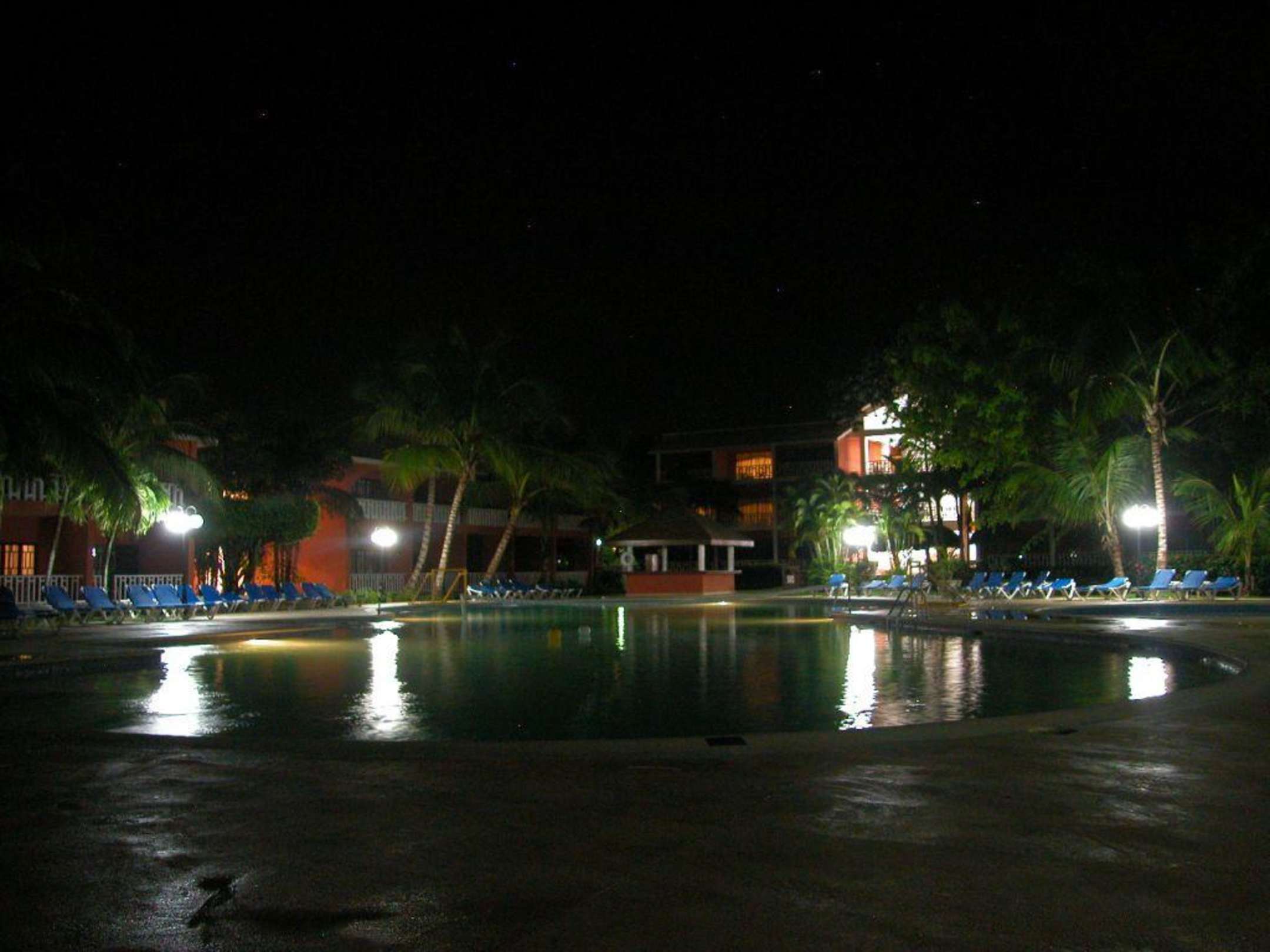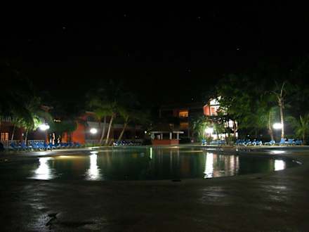 Grosser Poolbereich abends ,in der kleinen Hütte in der Bildmitte gibts frische Badetücher