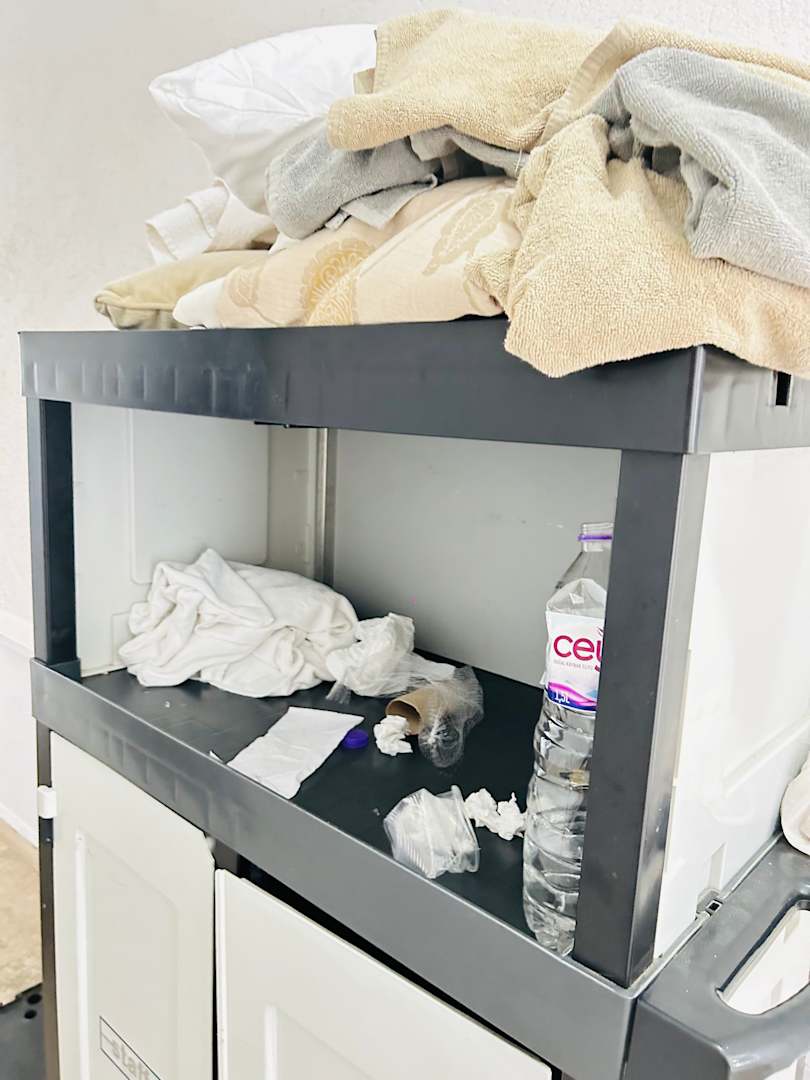 Stehen durchgängig von morgens bis abends in den Fluren dreckig rum