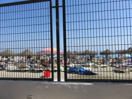 StrandDer Ausblick vom Hotel-"Freigehege" auf den Strand.