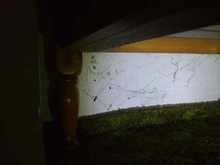Unter dem Bett, alles voller schwarzer Spinnweben