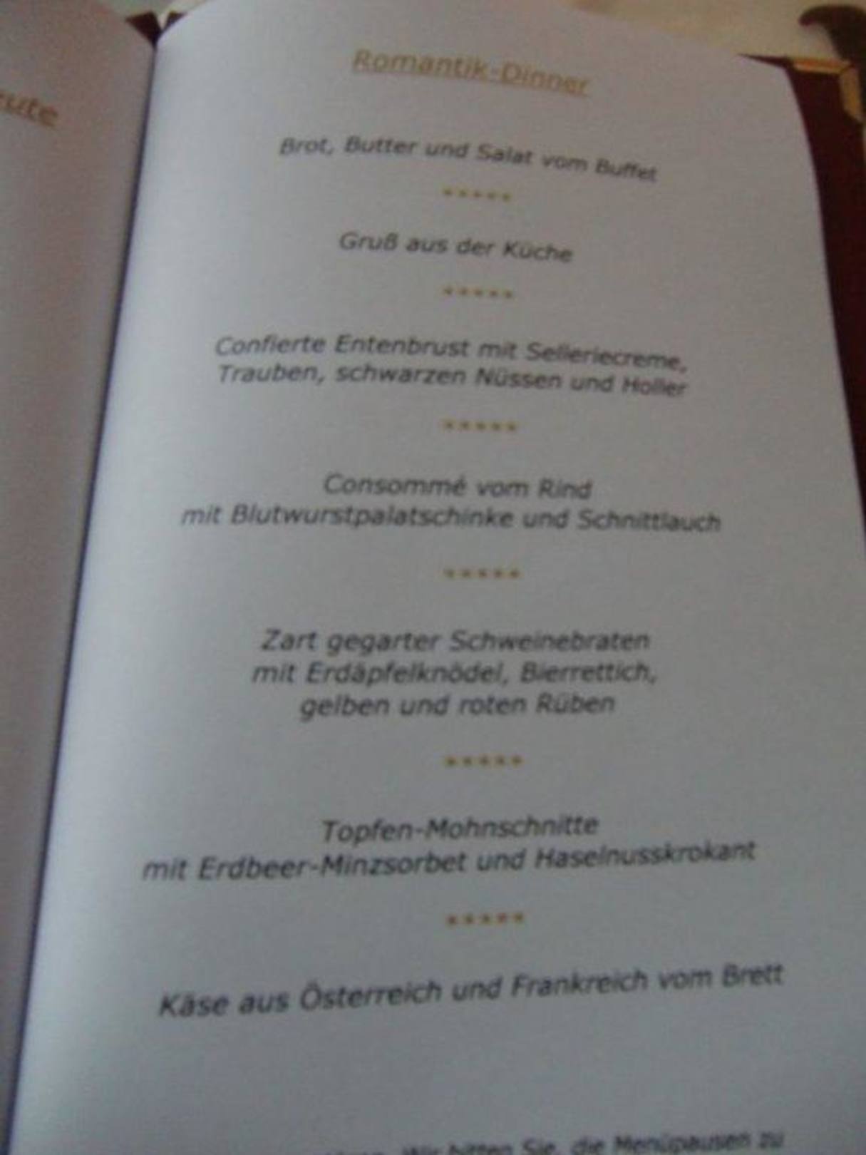 Kleiner Überblick des Romantik Dinners (7 Gänge)