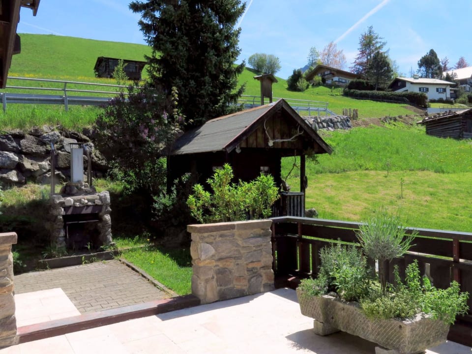 Taerrasse mit Kräutern und Grill
