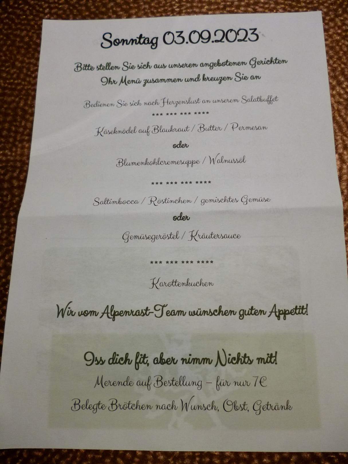 Menüvorschlag für das Abendessen z.B. für den 03.09.2023