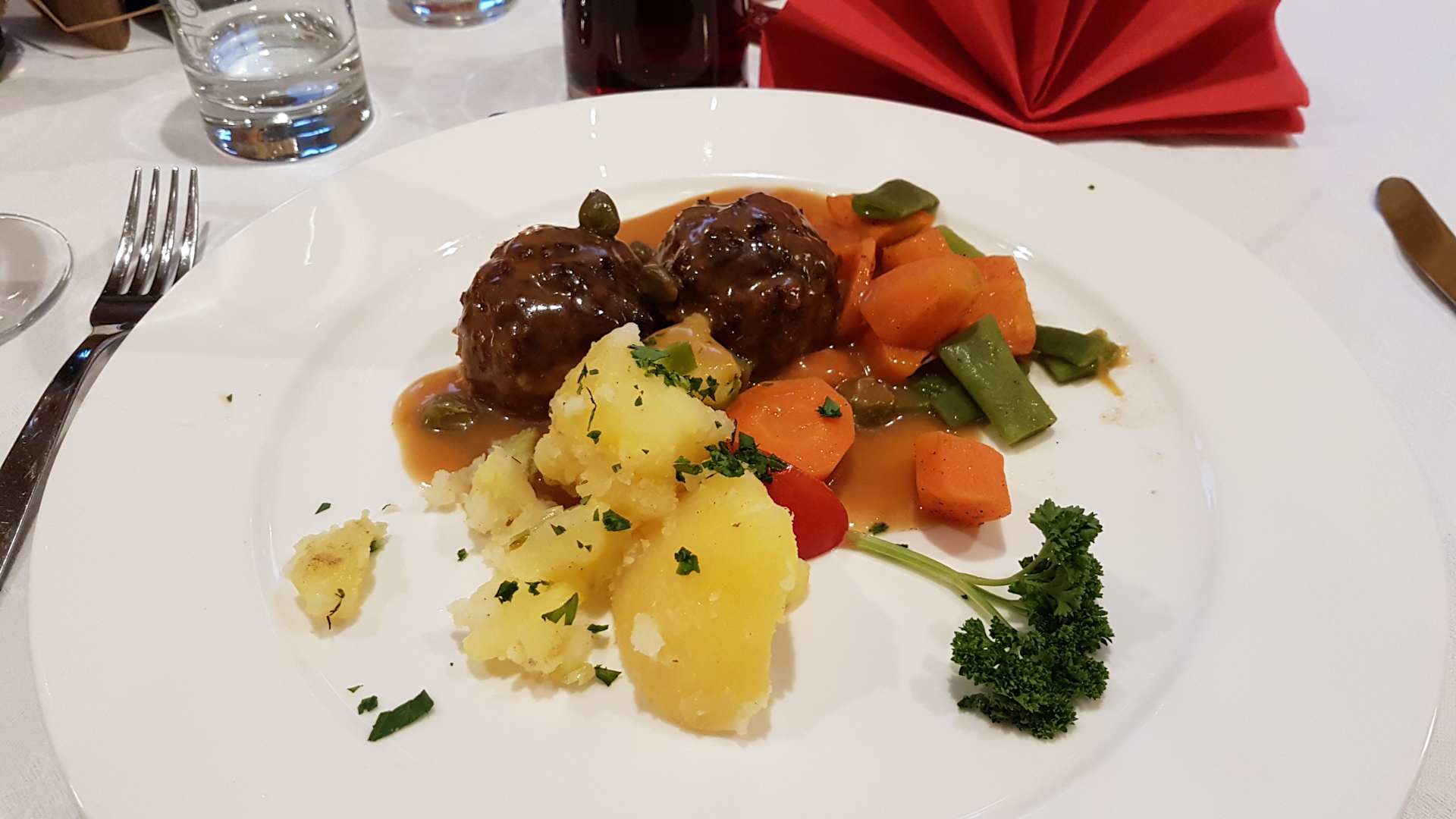 Sehr gut gewürzte Fleischknöpf. Hauptgang aus einer Tagesmenüwahl. :-)