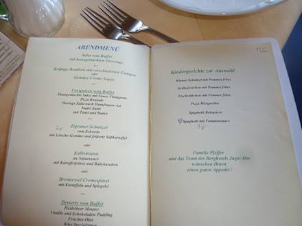 Menükarte mit Hauptspeisenauswahl