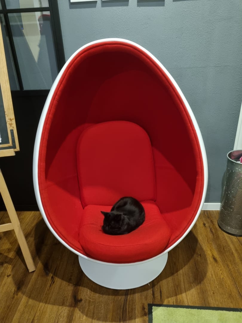 Sessel in der Lobby, auf dem eine Katze übernachtet hat