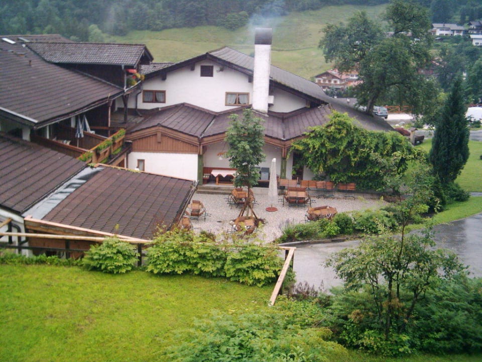 Das Bild zeigt eine der beiden Außenbereiche des Hotelrestaurants