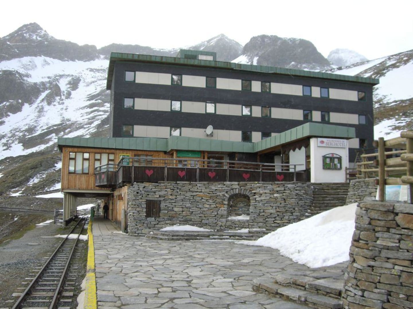 Hotel von aussen und Gleis der Bergbahn