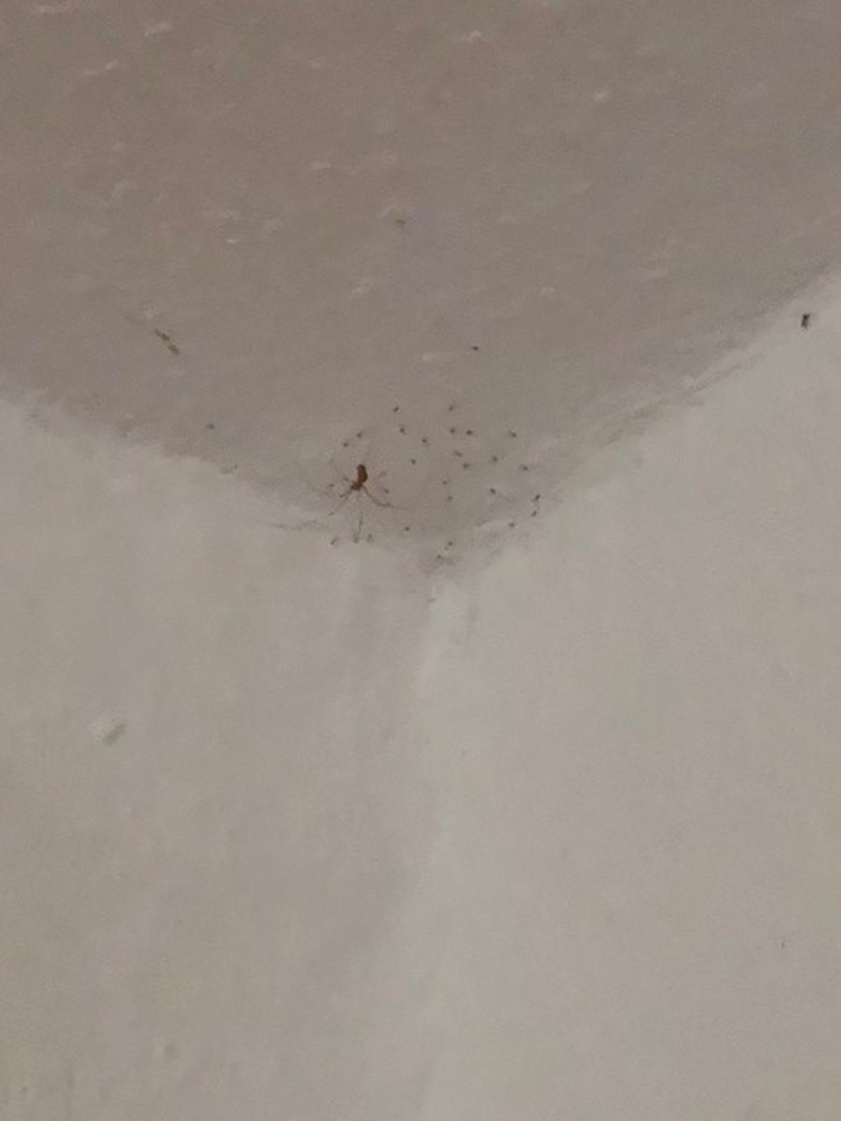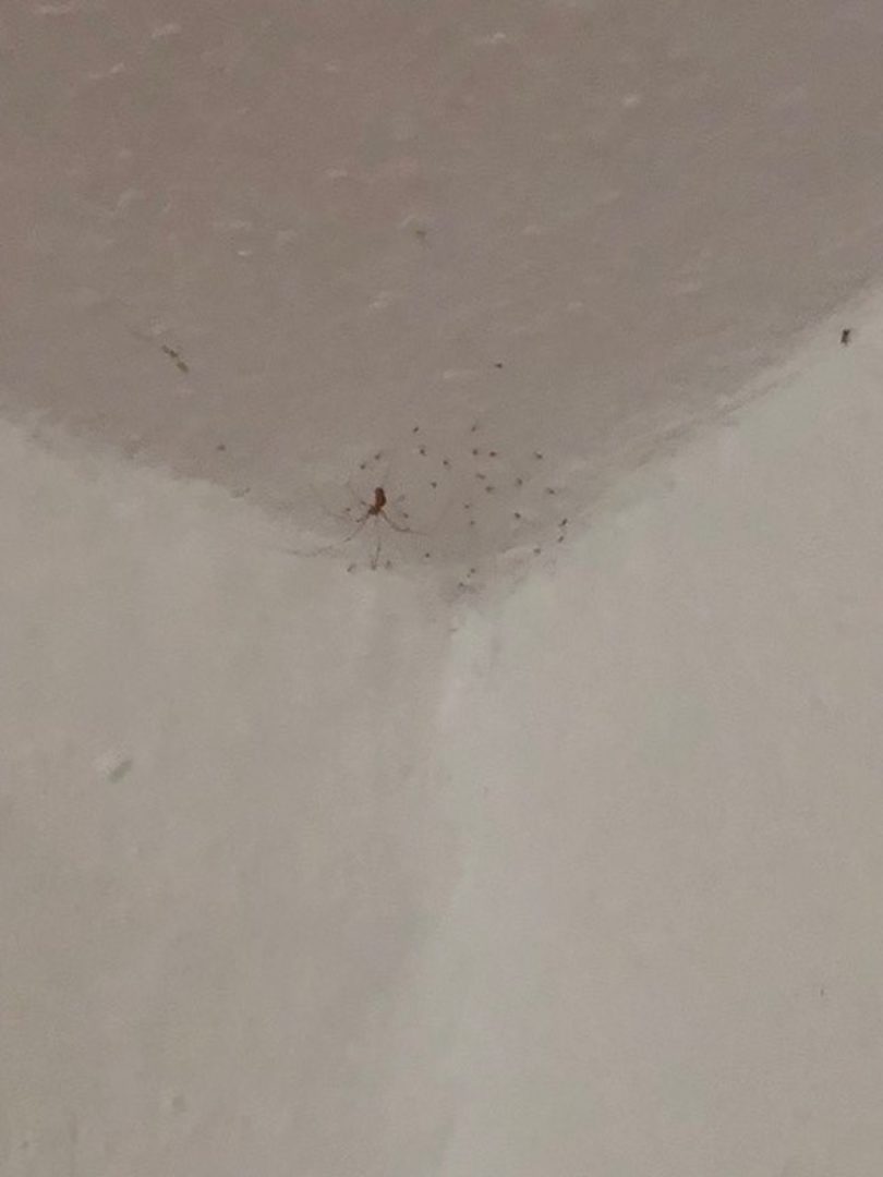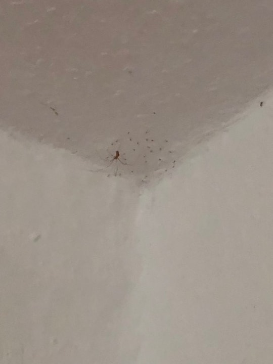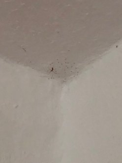 Zimmerecke mit Spinnenfamilie Decke