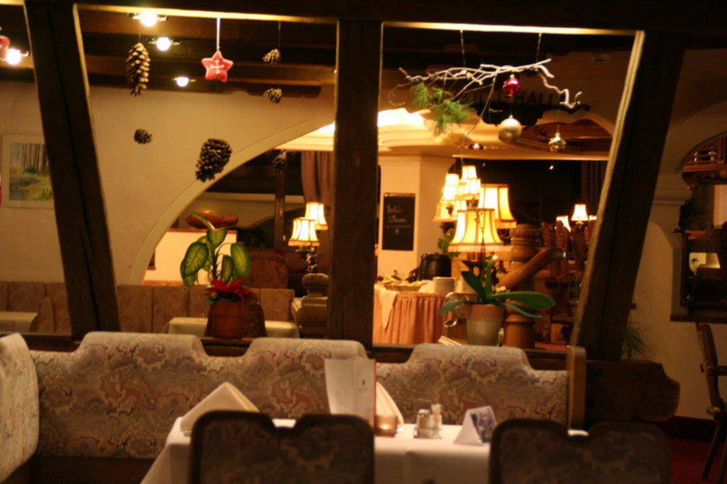 Blick vom Restaurant zur Bar Berghotel Tirol