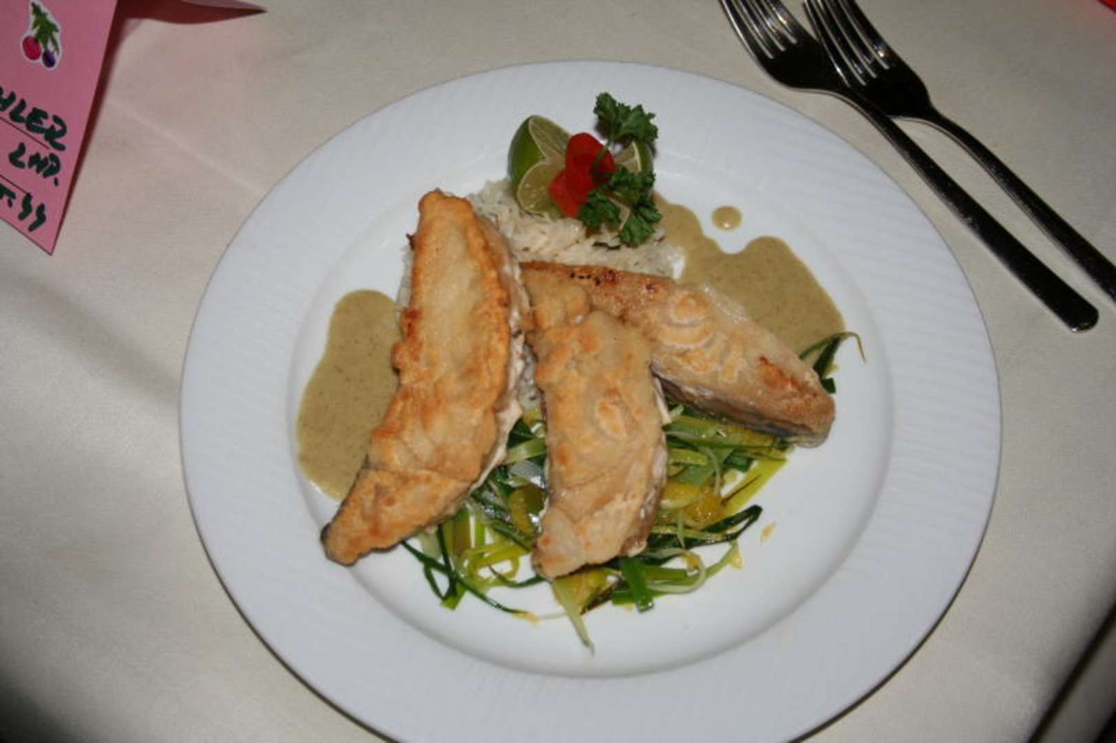 Pangasiusfilet auf Lauchgemüse, Rieslingsauce