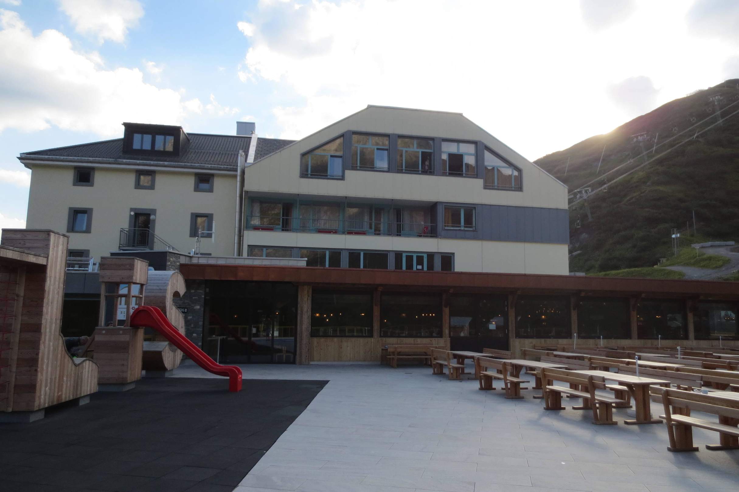 Aussenansicht auf Terrasse und Hotel