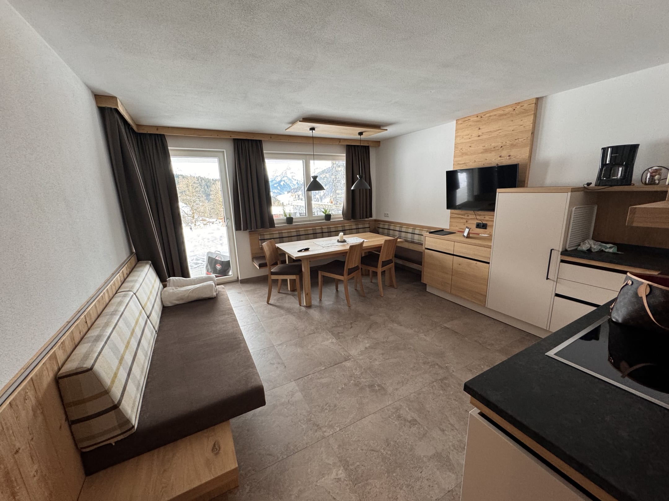 Wohn-Ess Bereich mit Blick auf die Berge. Top Modern und zum Wohlfühlen.