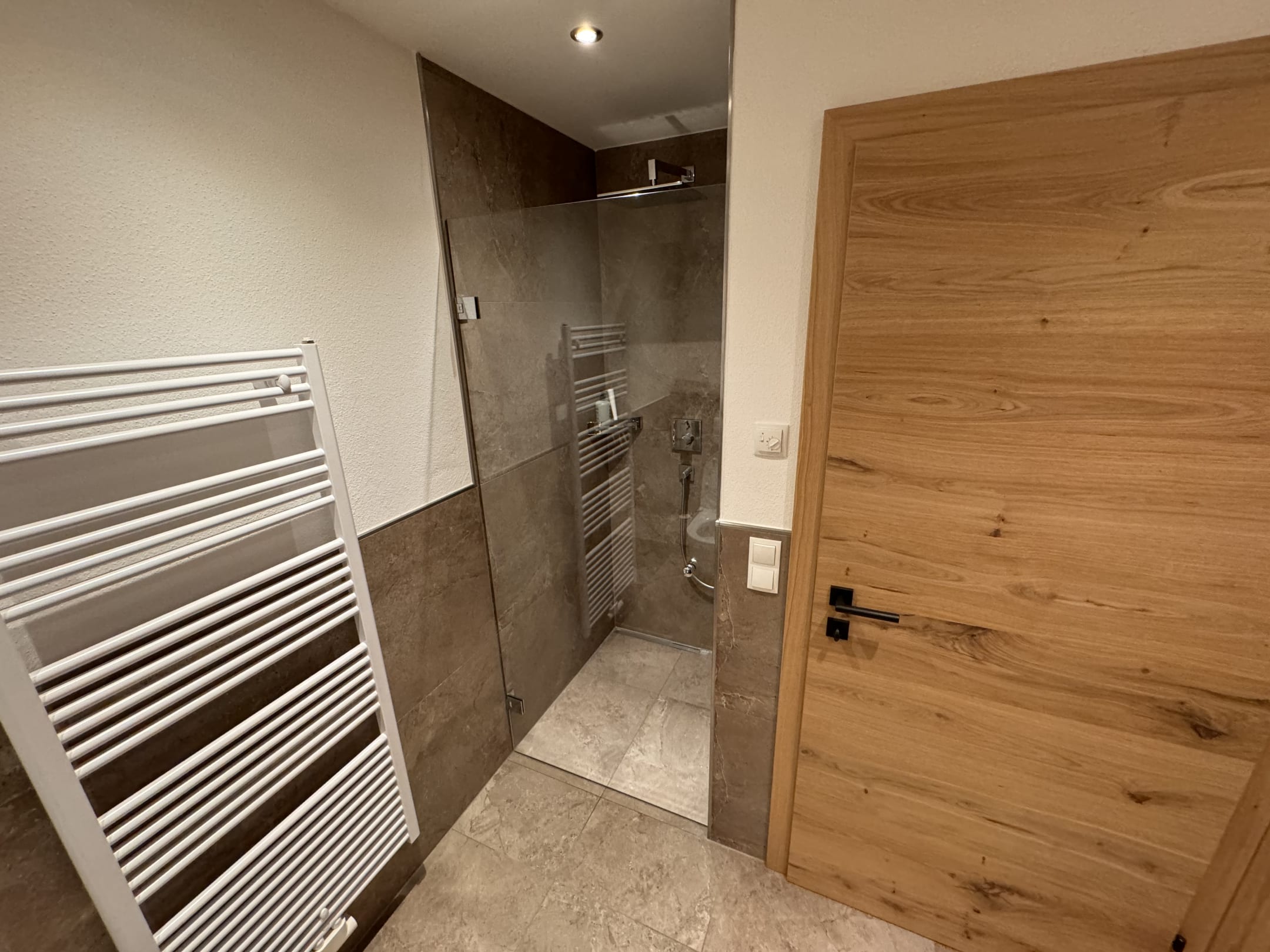 2x Badezimmer mit jeweils Toilette , Waschbecken und begehbarer Dusche.