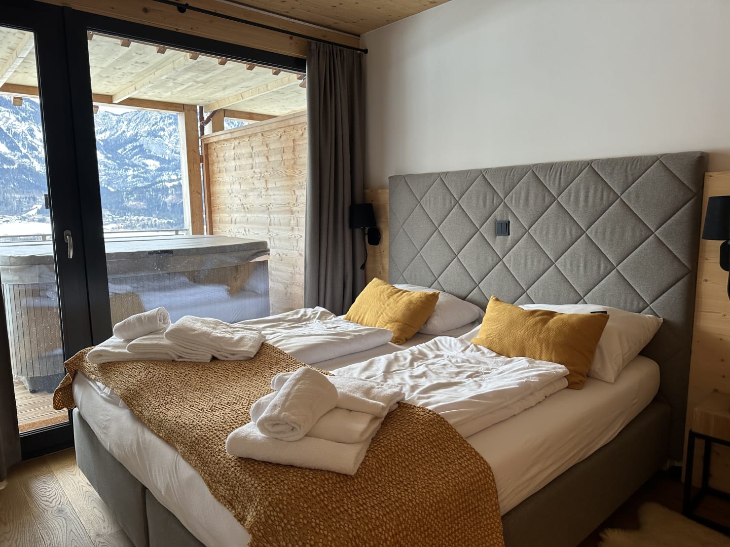 Das Bett füllt das Zimmer recht gut aus.