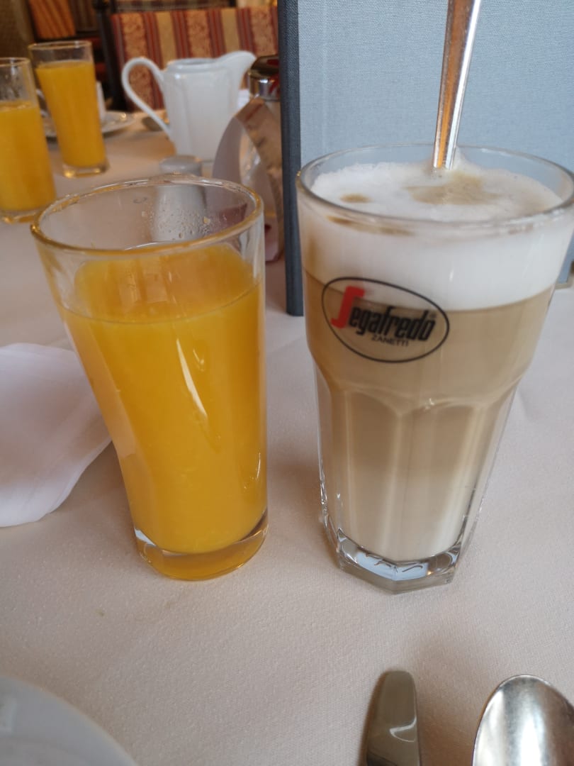 Frisch gepresster osaft und latte macchiatto