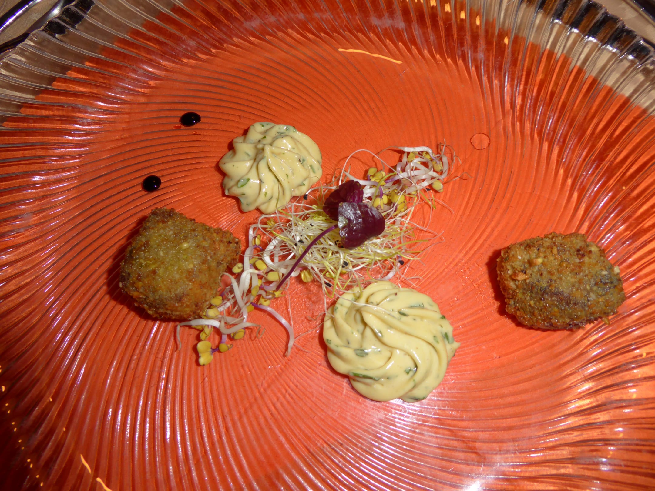 Vorspeise: Ochsenschwanzpraline mit Kräuter-Mayonnaise, ganz speziell, aber super fein