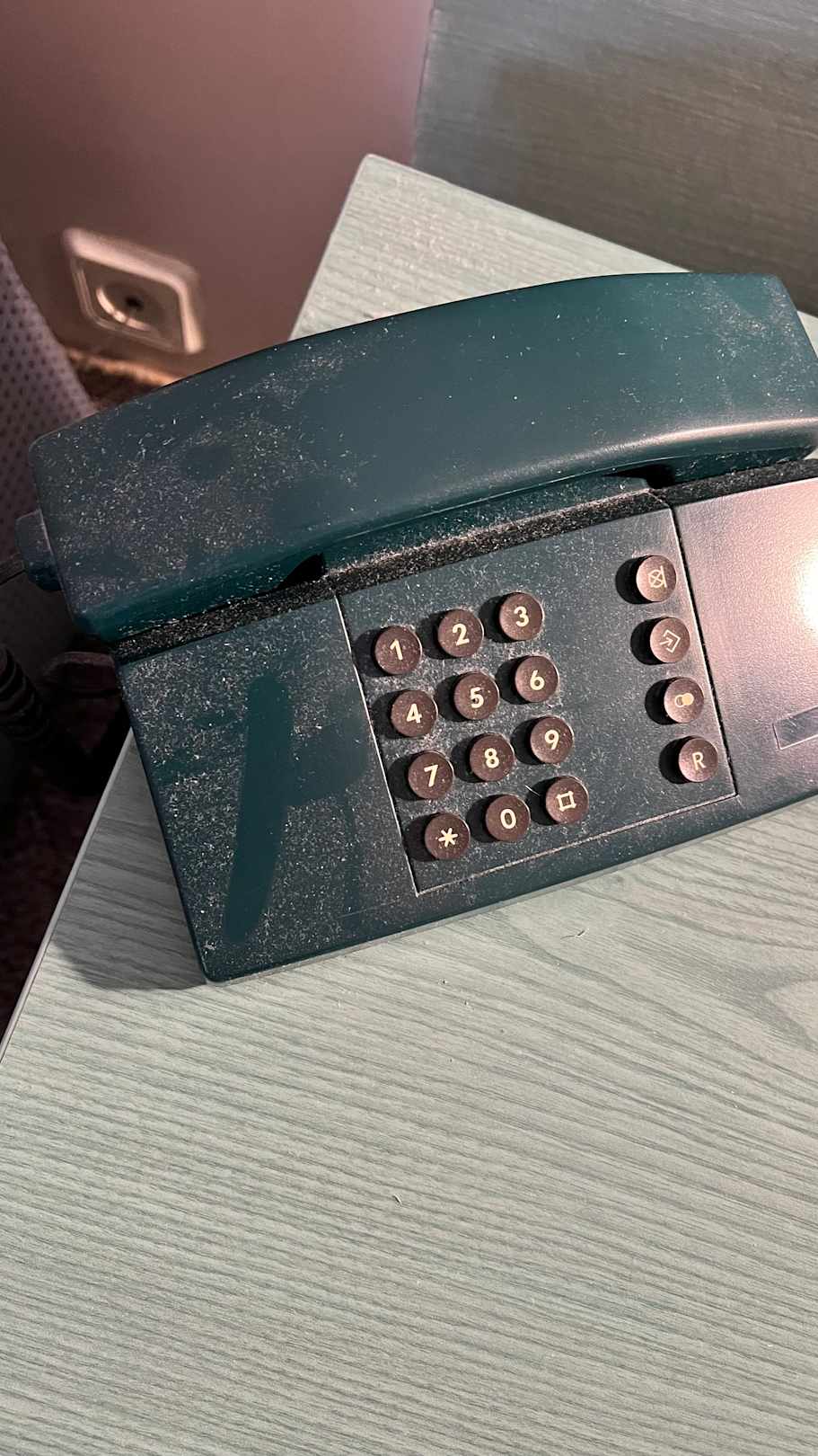 Staub auf dem Telefon auf dem Nachtschrank. Vom Einzug bis Auszug (10 Tage) keine Besserung