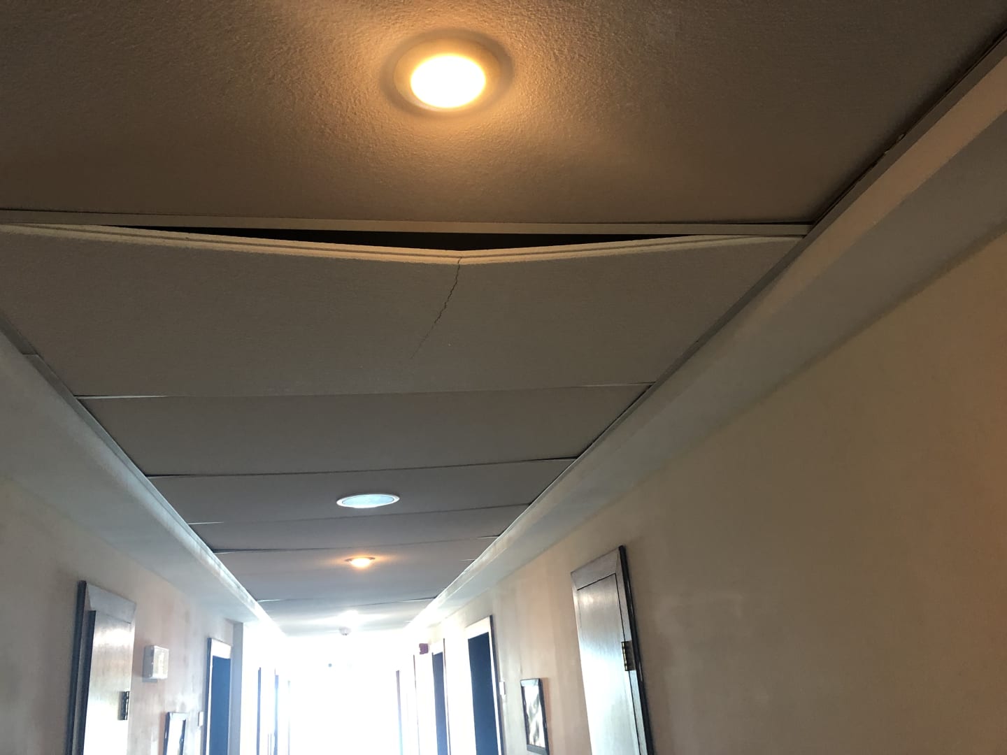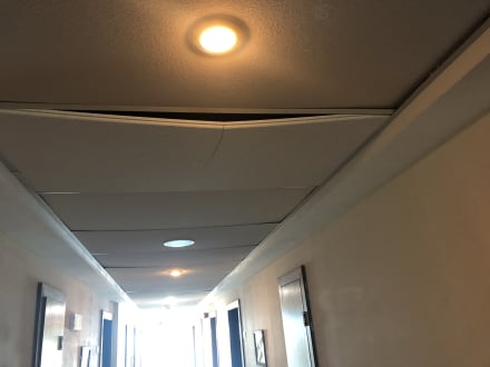 Deckenplatten zum Teil in den Fluren kaputt und hängen