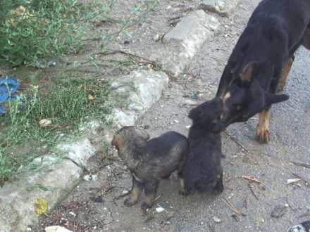 Welpe vor dem Hotel
