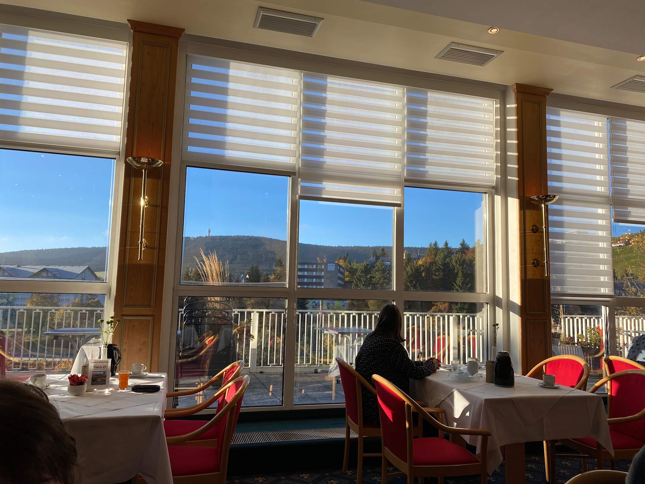 Blick zum Keilberg, beim Frühstück