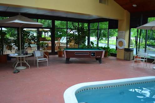 Ein Pooltisch neben dem Pool