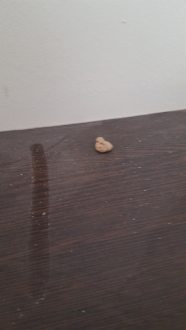 ZimmerDreck + Kaugummi auf Schrank (der Streifen ist von mir, zur besseren Verdeutlichung wie es normalerweise aussieht)
