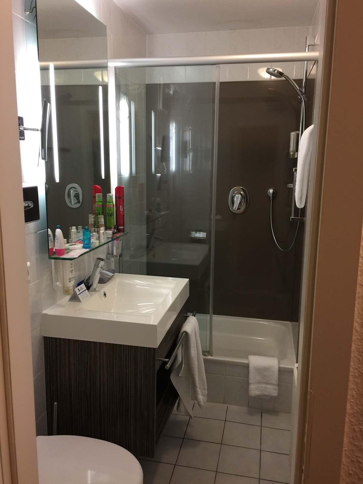 Das Badezimmer ist für eine Person total ausreichend. Pflegemittel und ein Haarfön waren vorhanden.