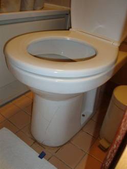 Geklebte Toilettenschüssel und um die Schüssel war der Boden verschmutzt.