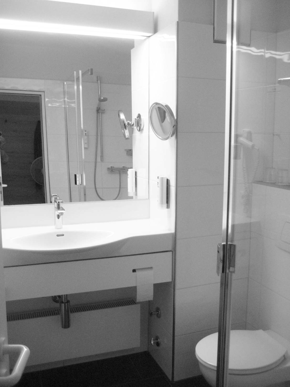 Mittig im Bild der Vergrößerungsspiegel