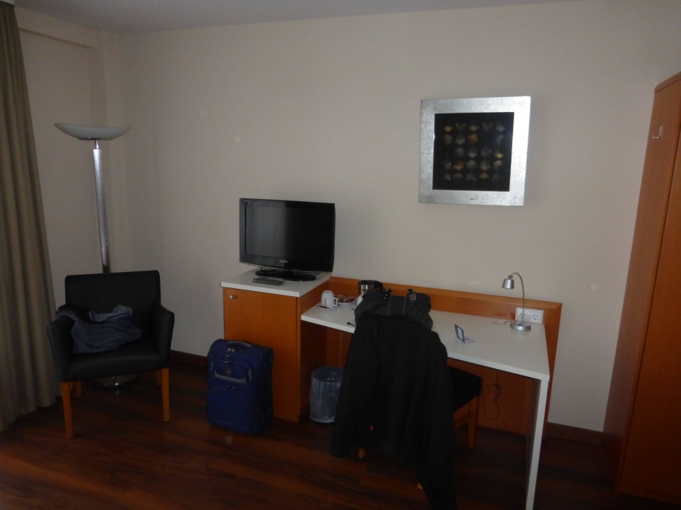 TV, Schreibtisch & Kühlschrank