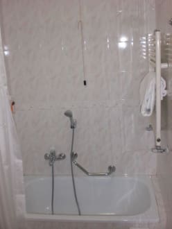 Kleine Dusche in ordentlichem Zustand