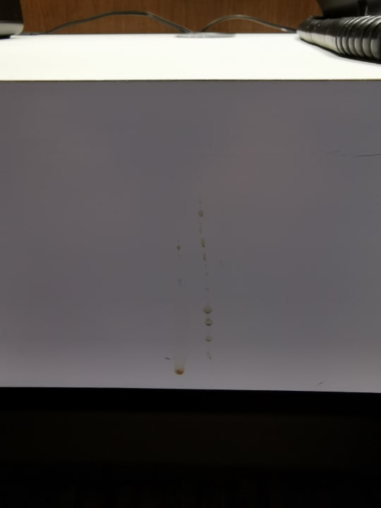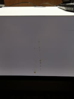 schmutzige Ablage neben dem Bett