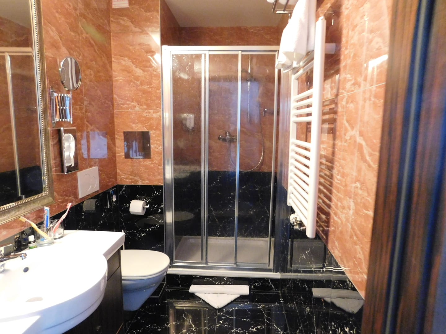 Bad war sehr schön und auch genügend Ablageflächen im Schrank unter dem Waschbecken