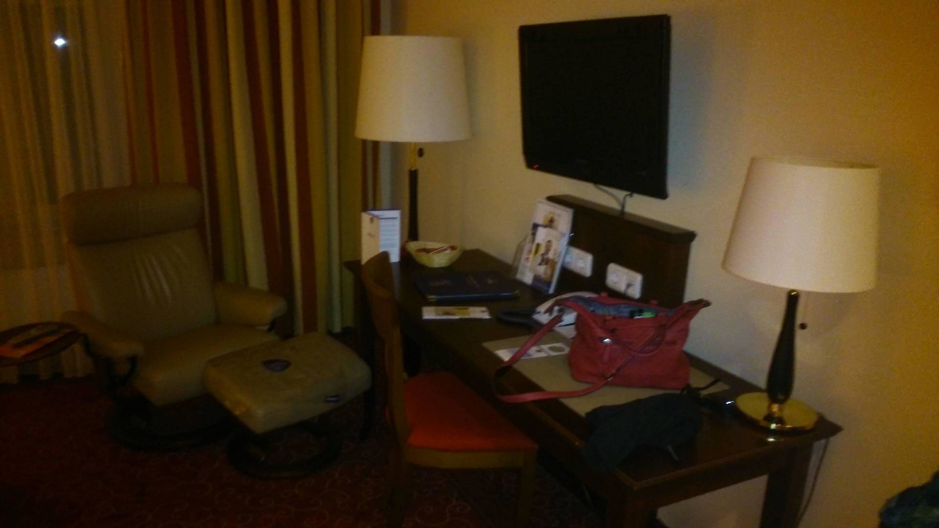 Schreibtisch mit Fernseher und Stressless-Sessel