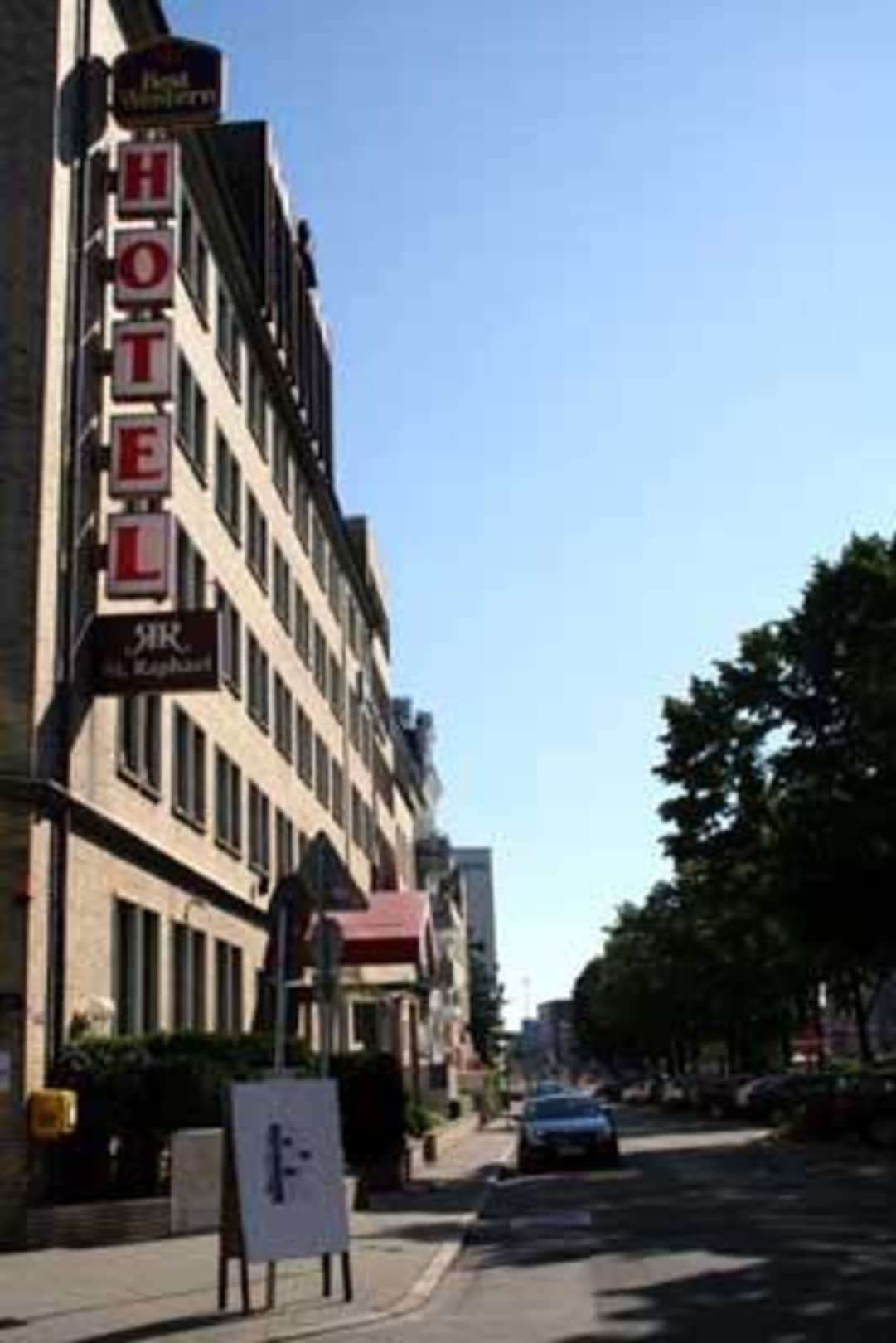 Aussenansicht vom Hotel Best Western St. Raphael an der Adenauerallee. Im Wohnviertel St. Georg, nur ein paar Minuten vom Hauptbahnhof Hamburg Nord entfernt.