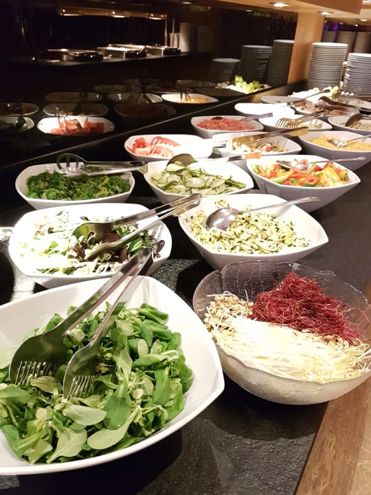 Zahlreiche Salat und Gemüsesorten mit verschiedenen Dressingsorten... Wahnsinns Auswahl