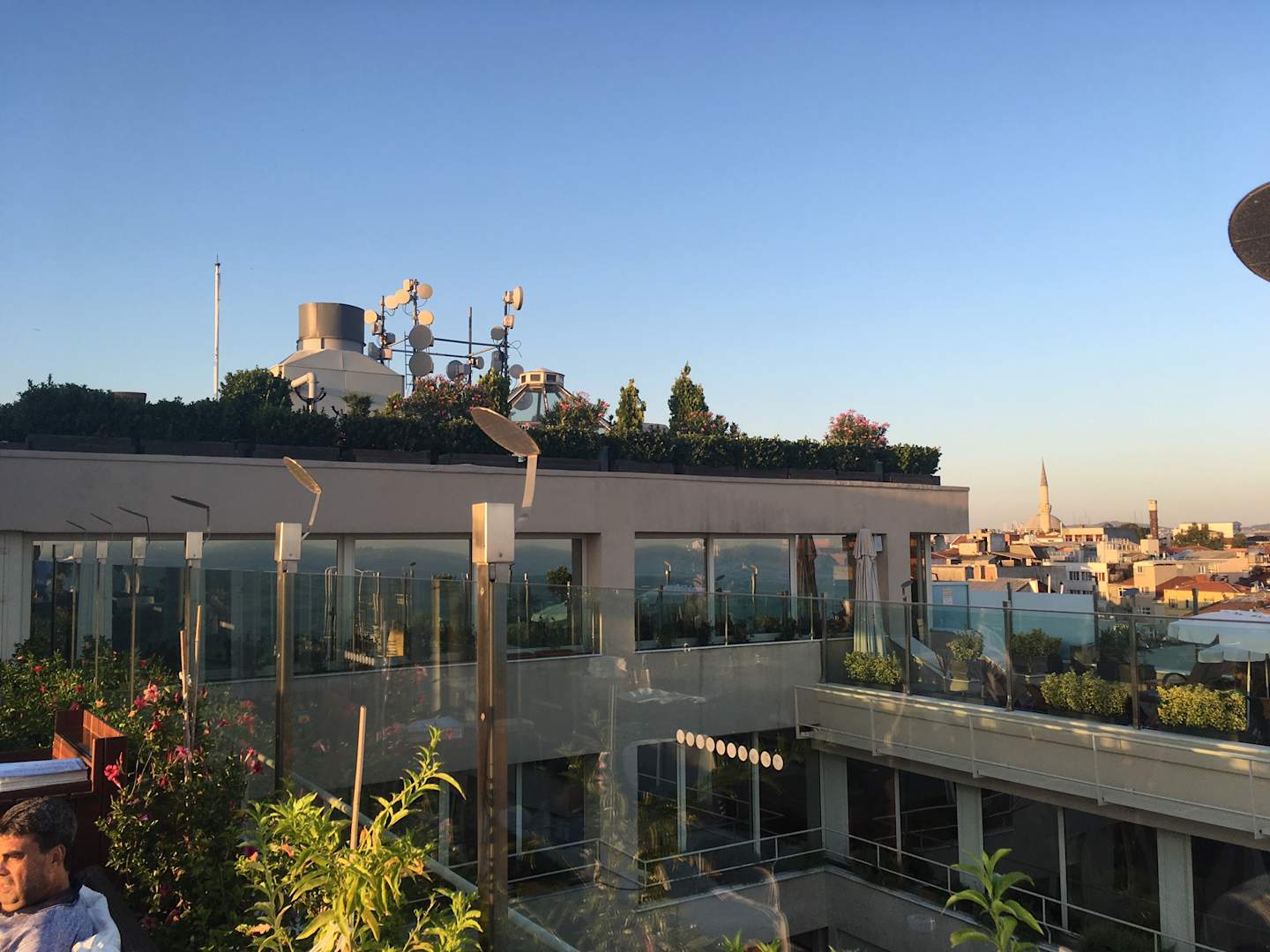 AusblickBlick vom Dachterrassen-Restaurant über den Bosporus. Nur eine kleine Karte mit wenigen internationalen Gerichten und geschmacklich kein Hit. Aber toller Ausblick :-)