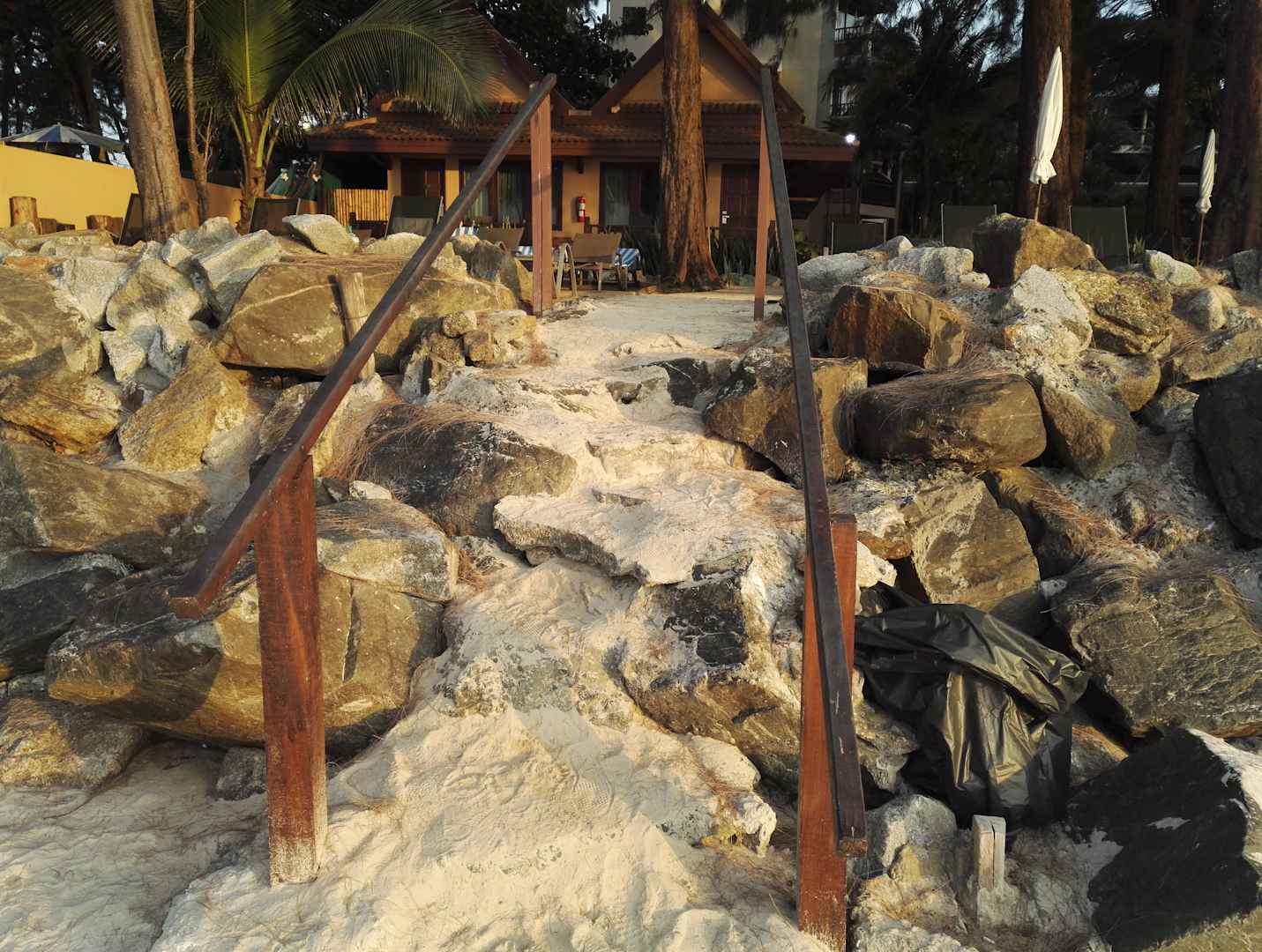 StrandDie "Treppe" vom Strand/Meer zum Hotel (es gibt noch weitere Treppen, eine davon ist recht "normal" )