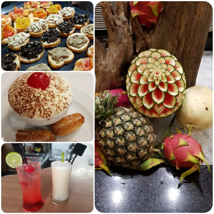 Buffet nicht sehr gross dafür gibt Mann sich mühe beim anrichten..