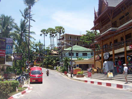 Geschäfte und Restaurants vor dem Hotel